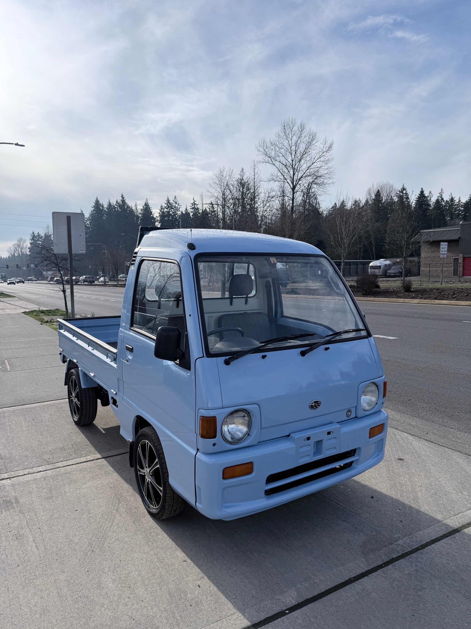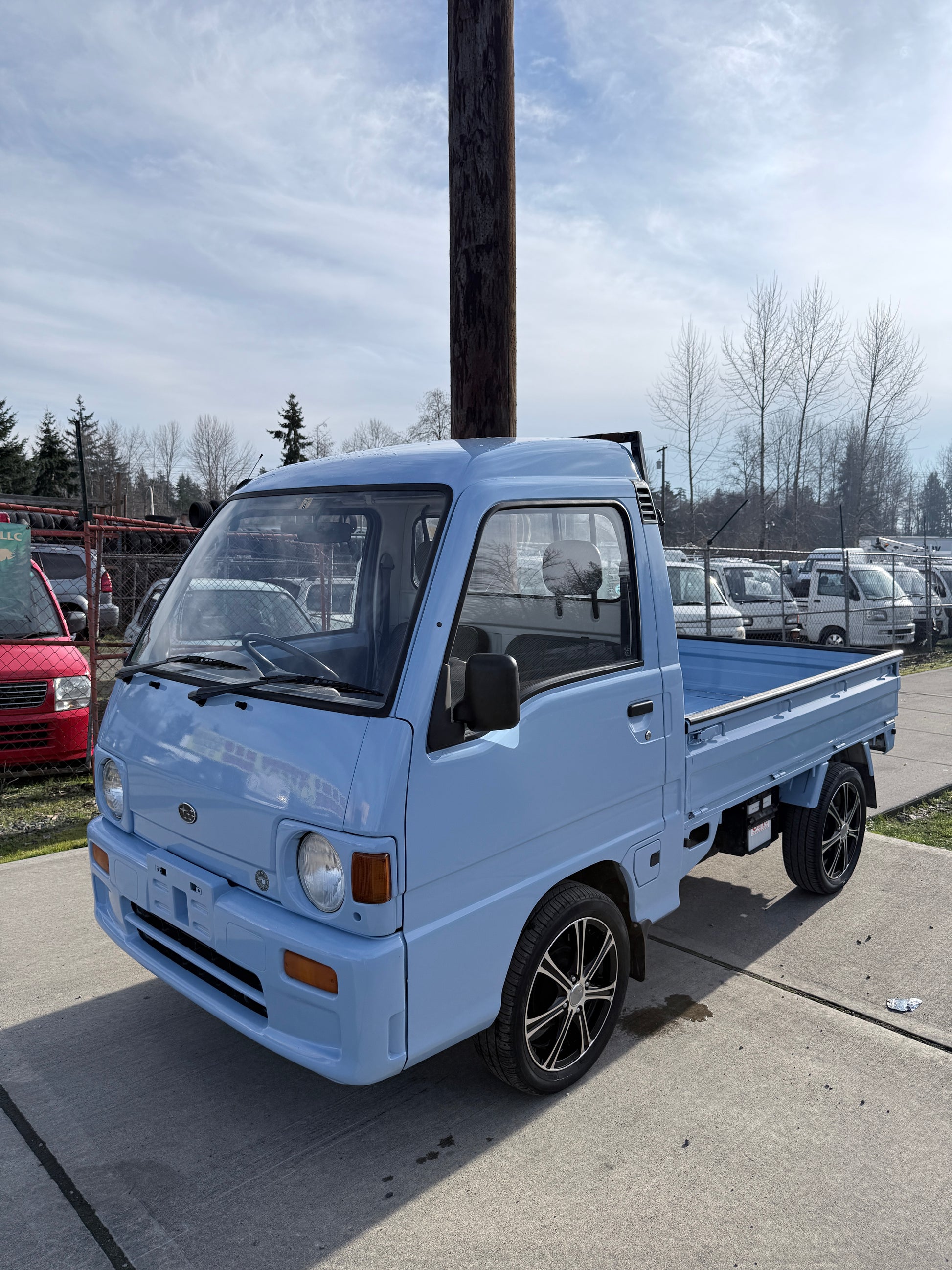 Clean and well-maintained JDM Subaru Sambar in rare light blue color.
