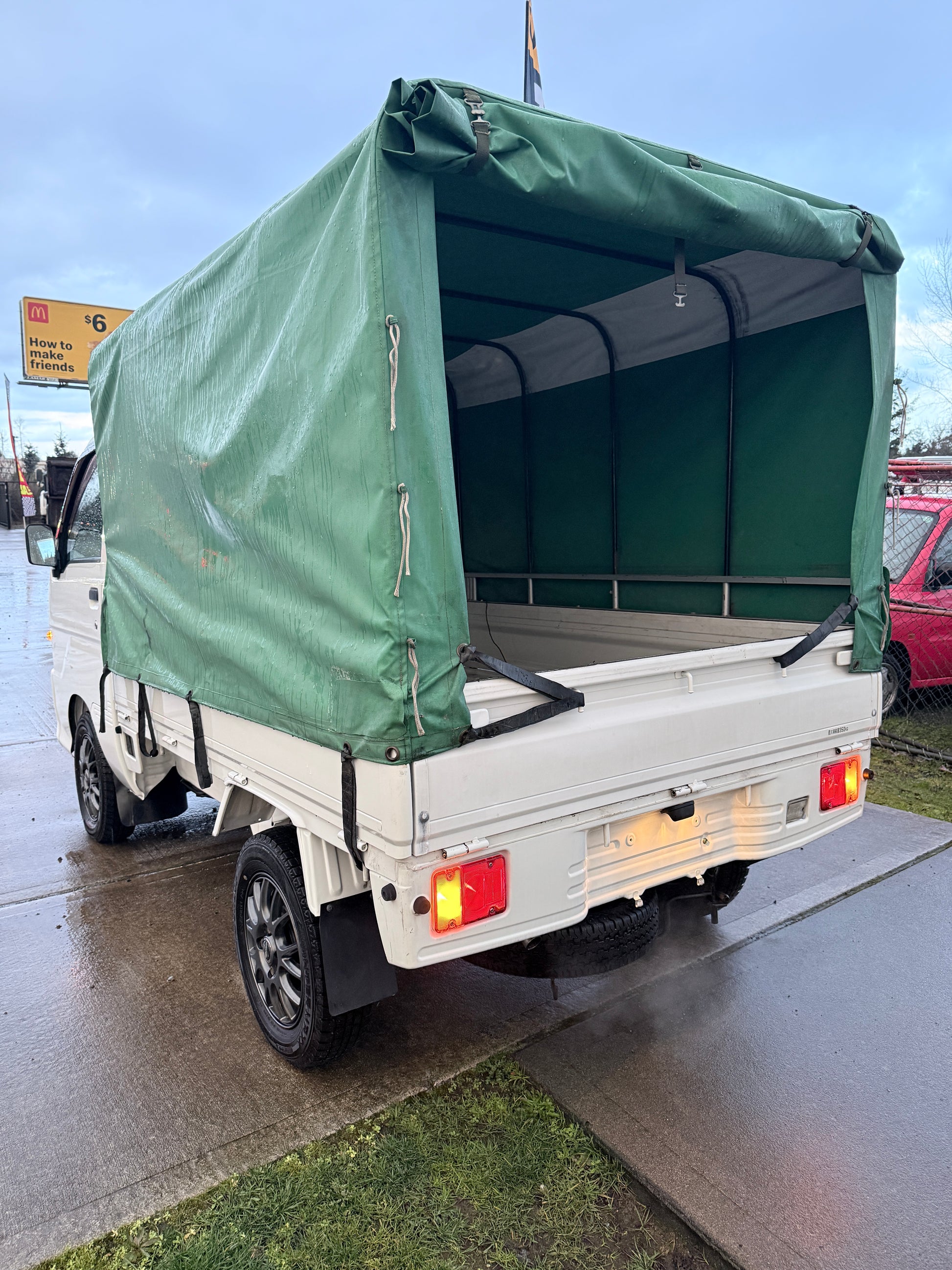 Very clean and rare 2000 Daihatsu Hijet kei truck with factory canvas cargo cover and 4WD, perfect for work, deliveries, landscaping, or daily use.